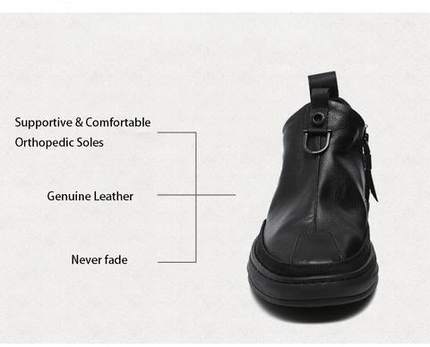 Hombres botas de cuero genuino con suelas ortopédicas de apoyo y cómodas