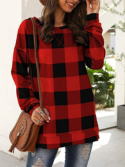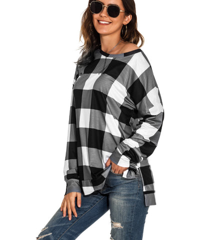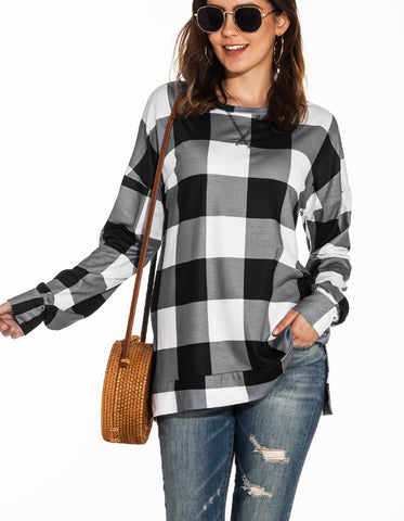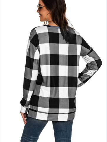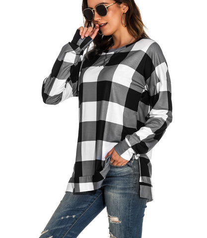 Tops causales de impresión a cuadros de manga larga
